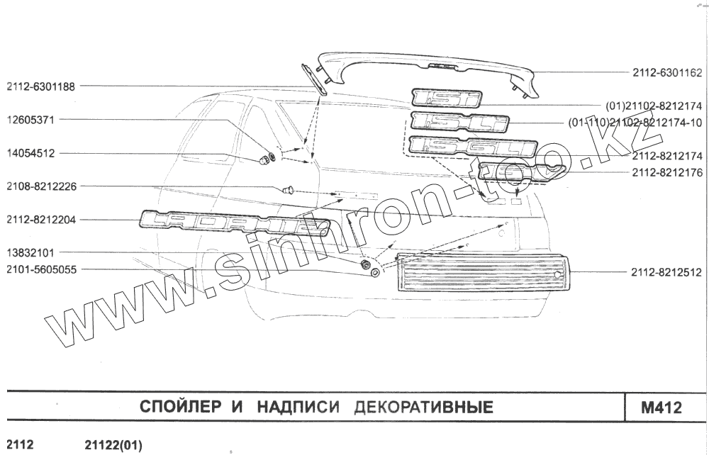 Каталог запасных частей к технике: ВАЗ-2110. спойлер и надписи декоративные