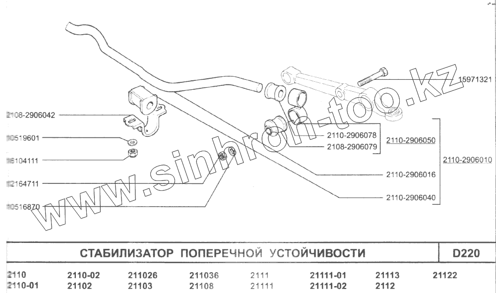 Каталог запасных частей к технике: ВАЗ-2110. Стабилизатор поперечной устойчивости
