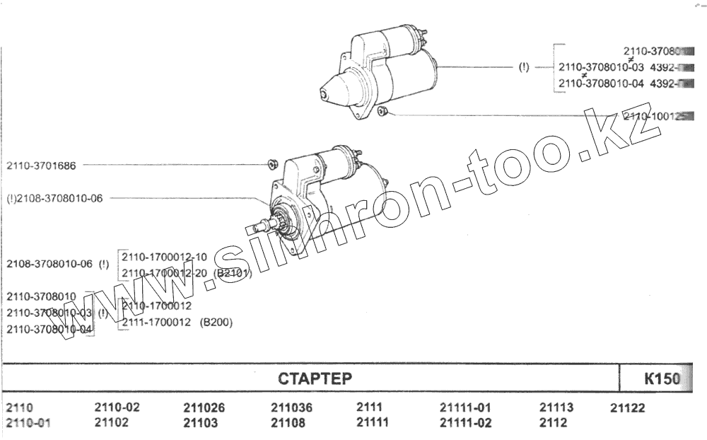 Каталог запасных частей к технике: ВАЗ-2110. Стартер