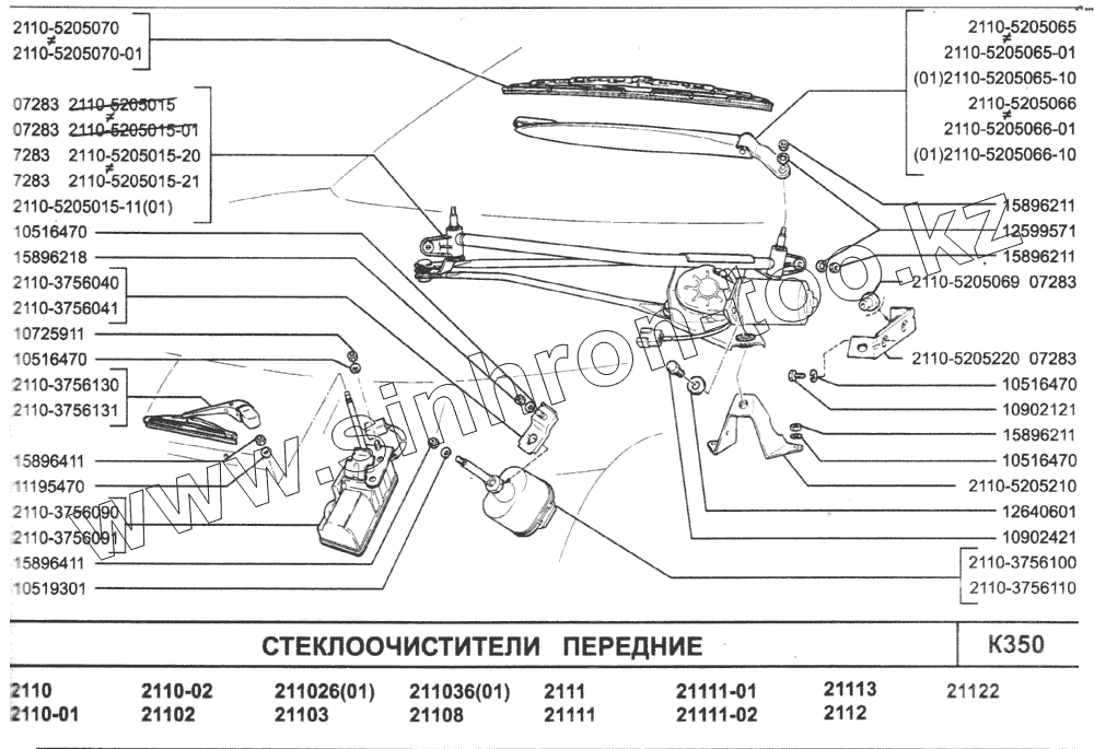 Каталог запасных частей к технике: ВАЗ-2110. Стеклоочистители передние