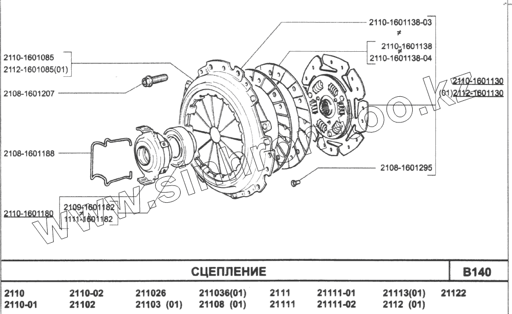 Каталог запасных частей к технике: ВАЗ-2110. Сцепление