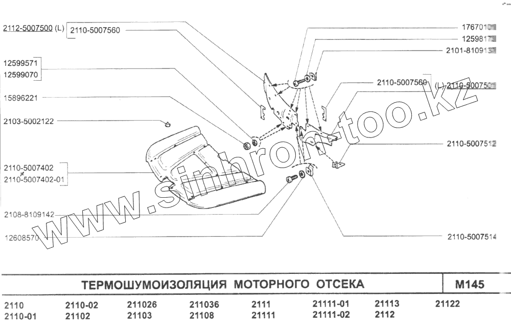 Каталог запасных частей к технике: ВАЗ-2110. Термошумоизоляция моторного отсека