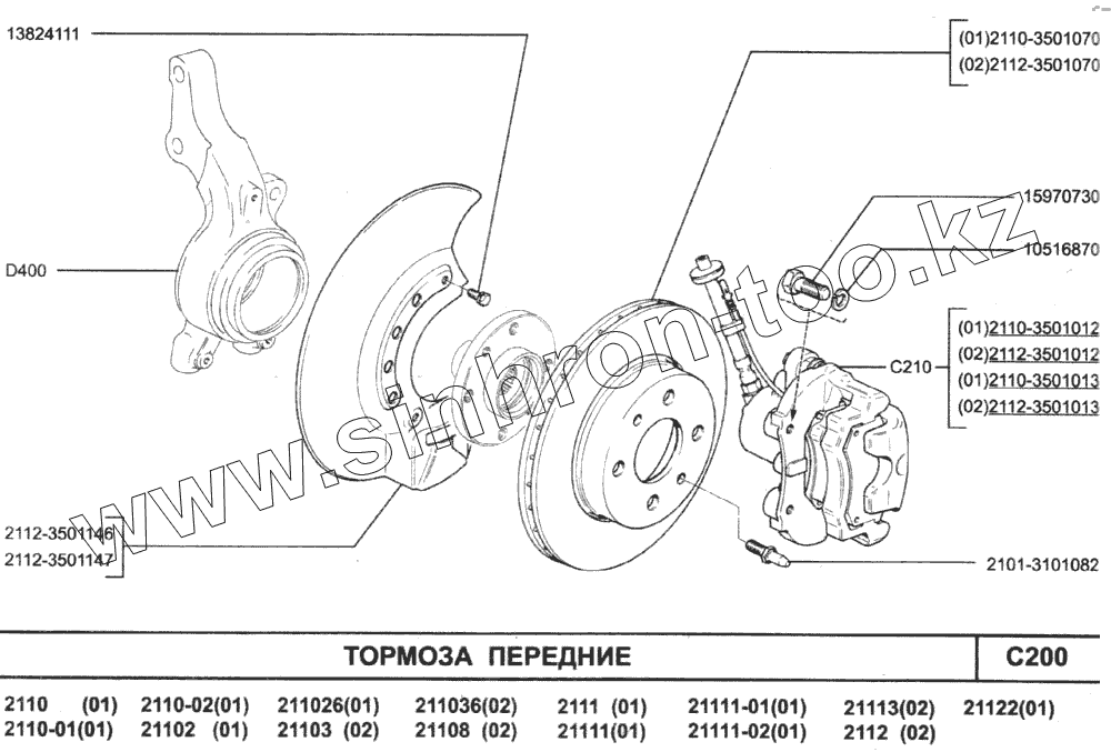 Каталог запасных частей к технике: ВАЗ-2110. Тормоза передние