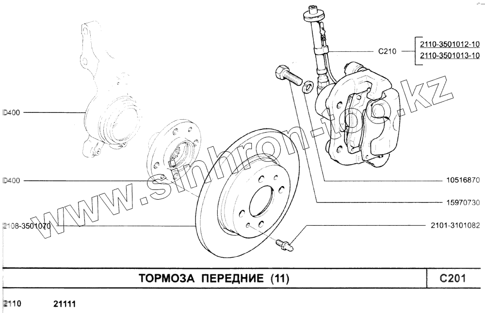 Каталог запасных частей к технике: ВАЗ-2110. Тормоза передние (11)