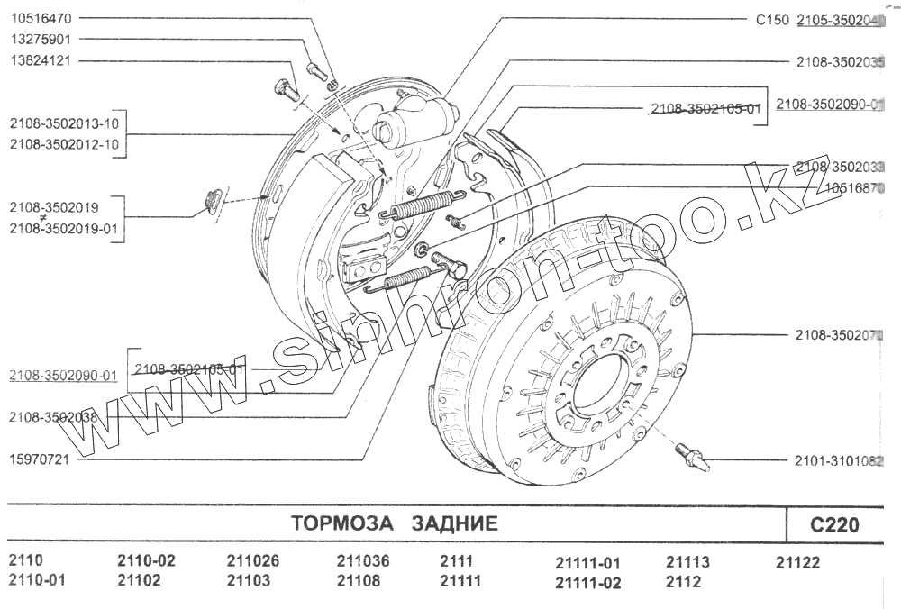 Каталог запасных частей к технике: ВАЗ-2110. Тормоза задние
