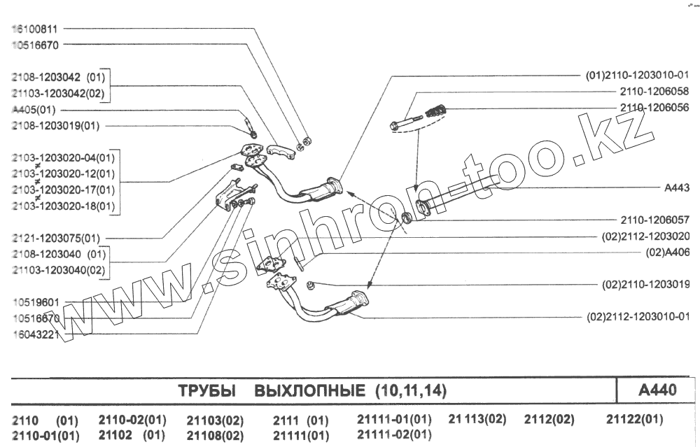 Каталог запасных частей к технике: ВАЗ-2110. Трубы выхлопные (10,11,14)