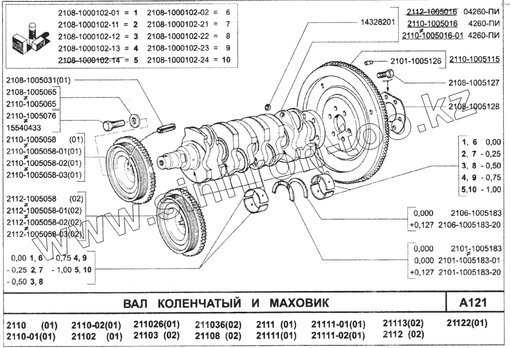Каталог запасных частей к технике: ВАЗ-2110. Вал коленчатый и маховик