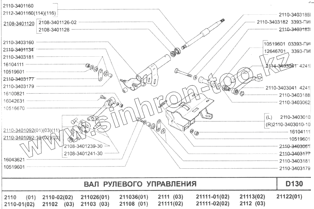 Каталог запасных частей к технике: ВАЗ-2110. Вал рулевого управления