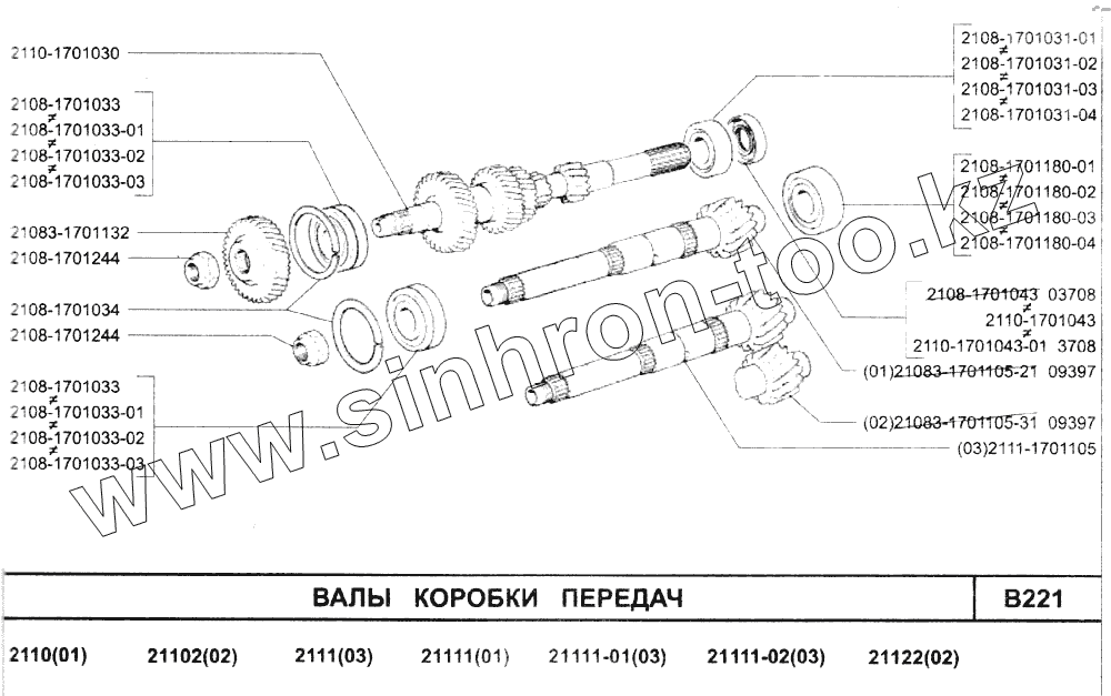Каталог запасных частей к технике: ВАЗ-2110. Валы коробки передач
