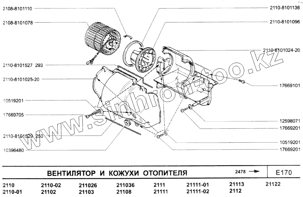 Каталог запасных частей к технике: ВАЗ-2110. Вентилятор и кожухи отопителя