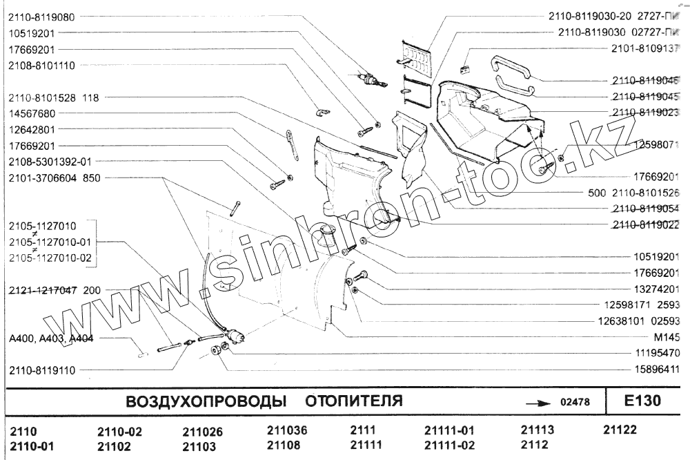 Каталог запасных частей к технике: ВАЗ-2110. Воздухопроводы отопителя