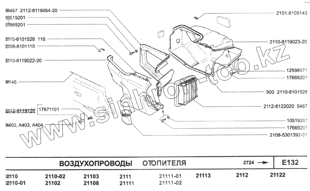 Каталог запасных частей к технике: ВАЗ-2110. Воздухопроводы отопителя
