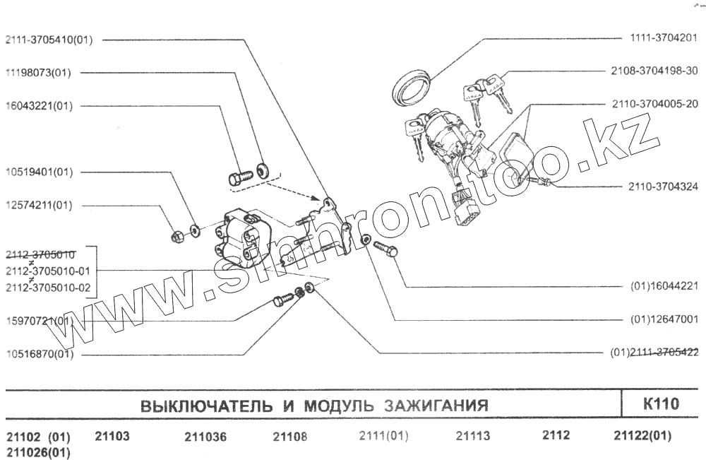 Каталог запасных частей к технике: ВАЗ-2110. Выключатель и модуль зажигания