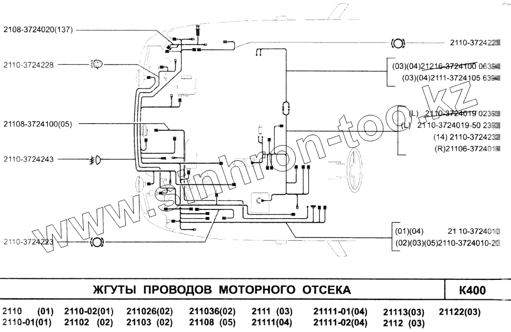 Каталог запасных частей к технике: ВАЗ-2110. Жгуты проводв моторного отсека