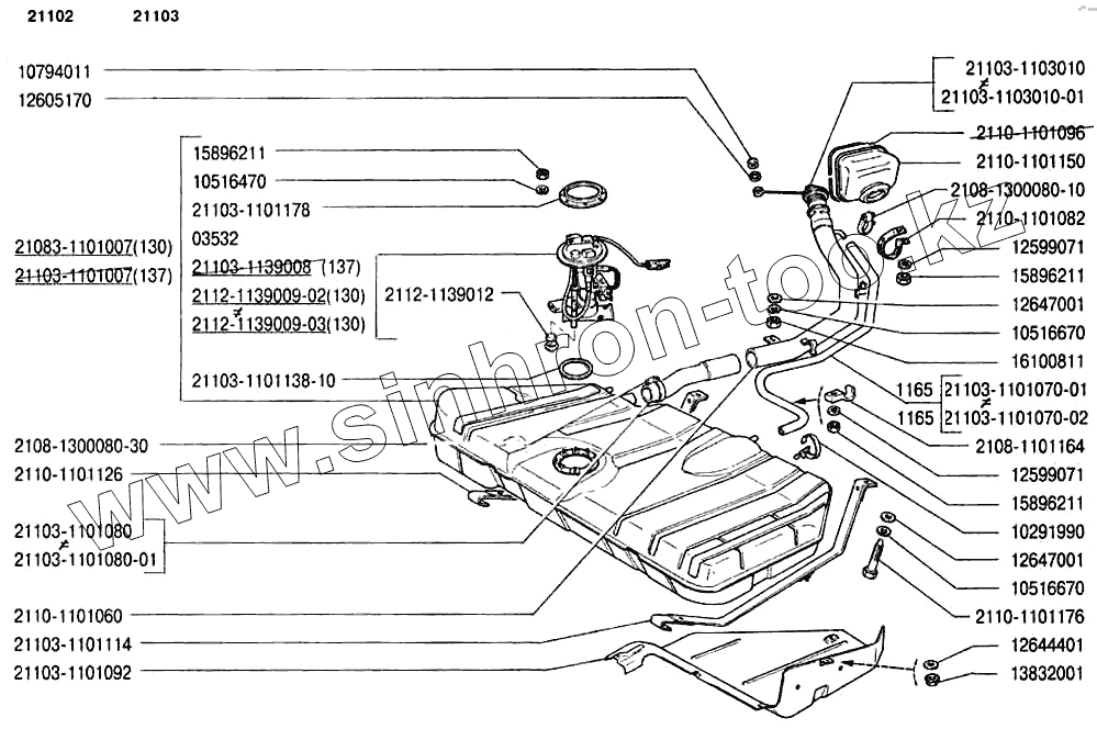 Каталог запасных частей к технике: ВАЗ-2110. Бак топливный (130, 137)