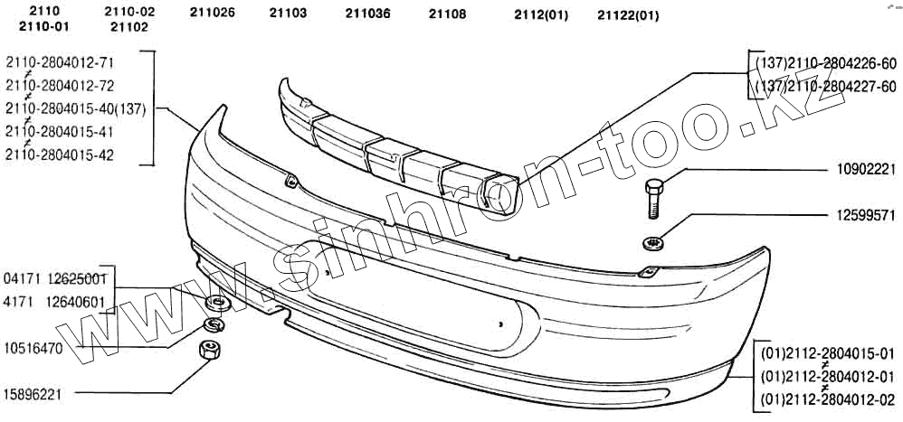 Каталог запасных частей к технике: ВАЗ-2110. Бампер задний
