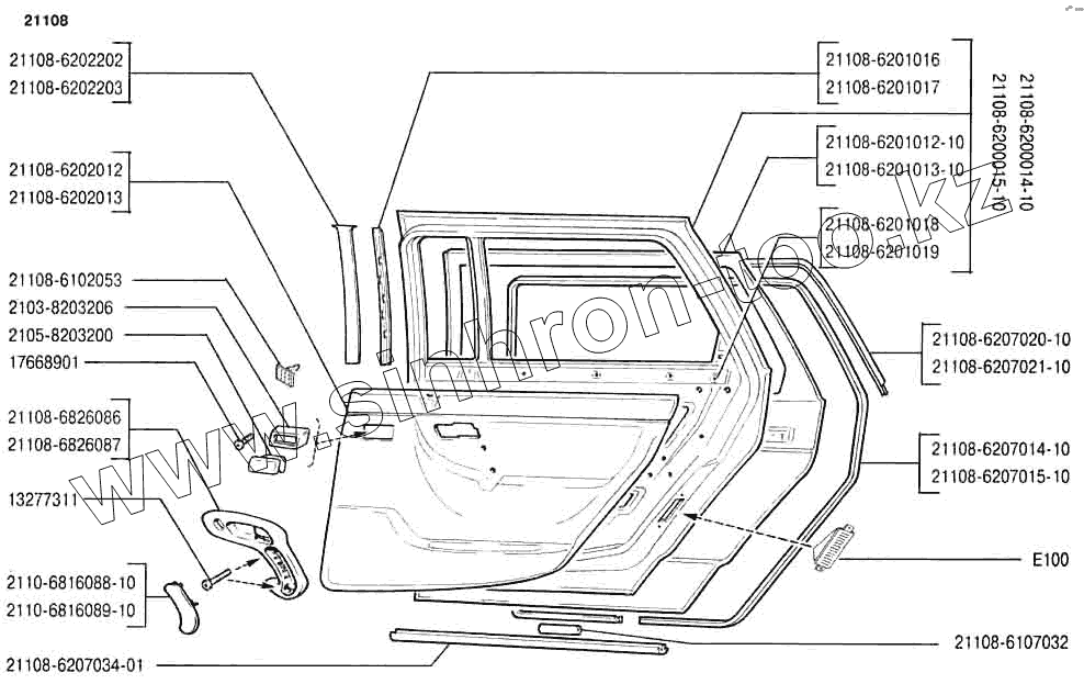 Каталог запасных частей к технике: ВАЗ-2110. Двери задние
