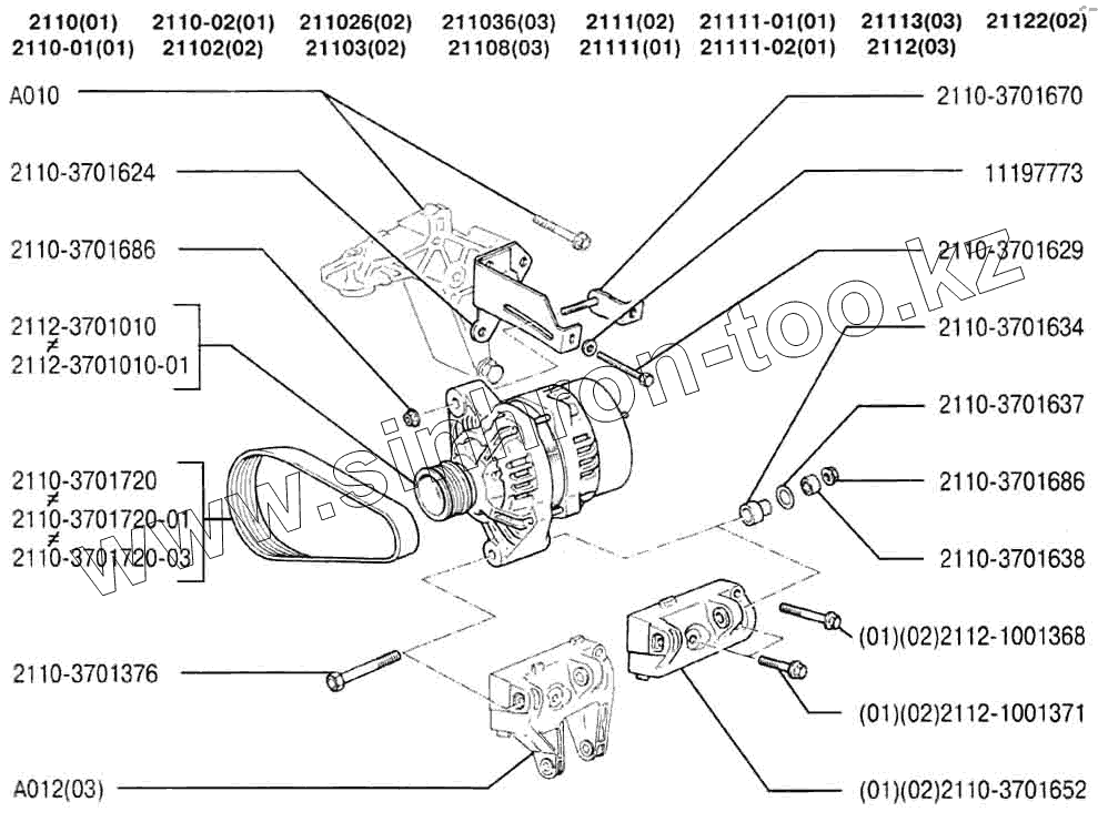 Каталог запасных частей к технике: ВАЗ-2110. Генератор с арматурой