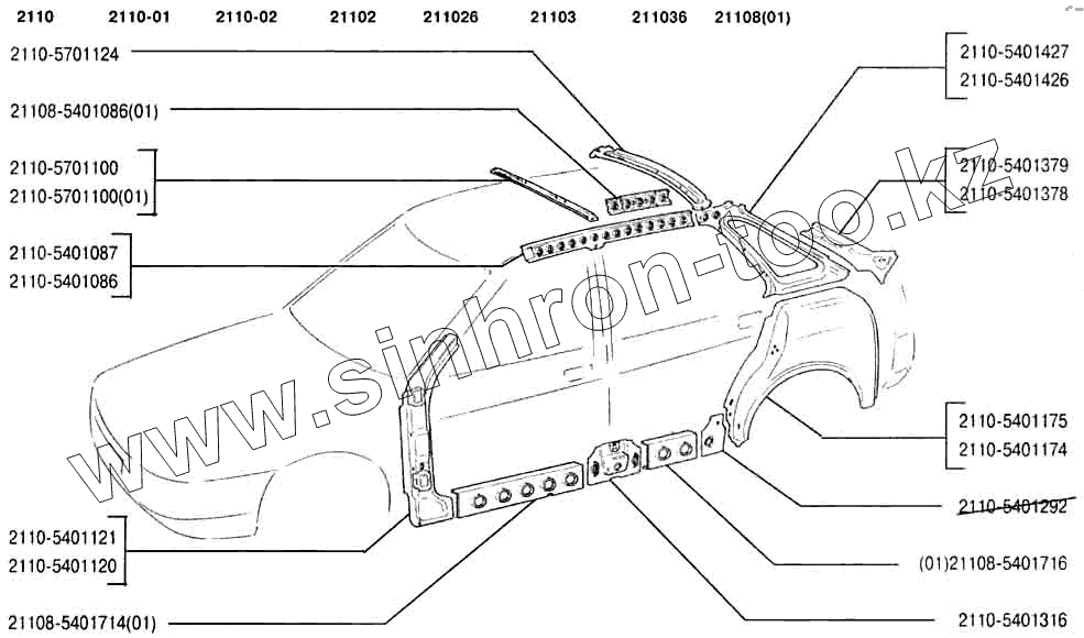 Каталог запасных частей к технике: ВАЗ-2110. Каркас боковины и задка