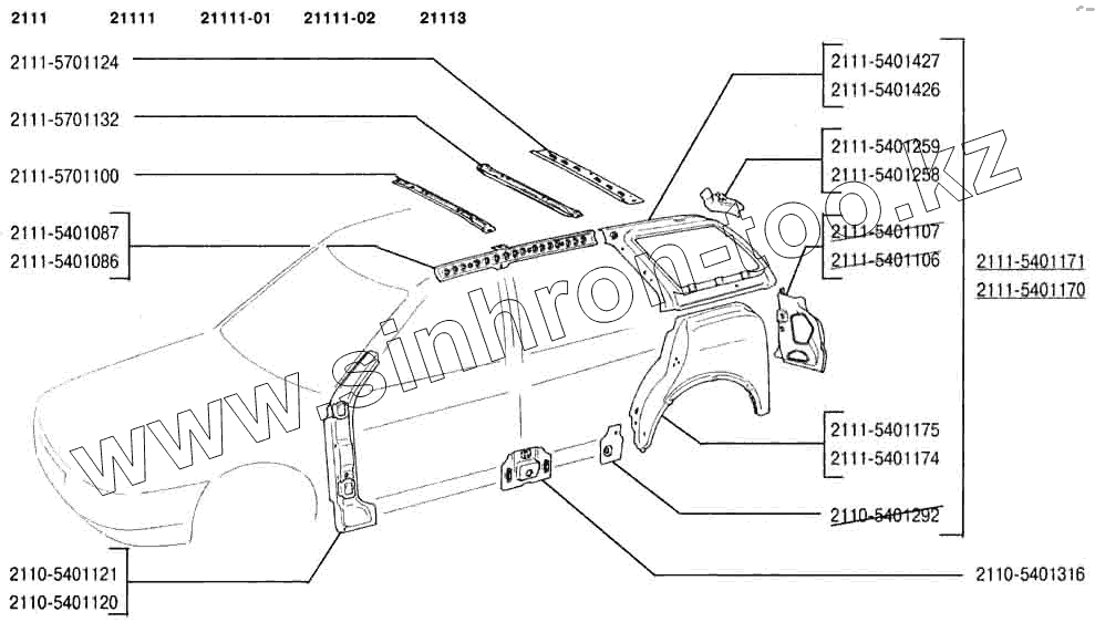 Каталог запасных частей к технике: ВАЗ-2110. Каркас боковины и задка