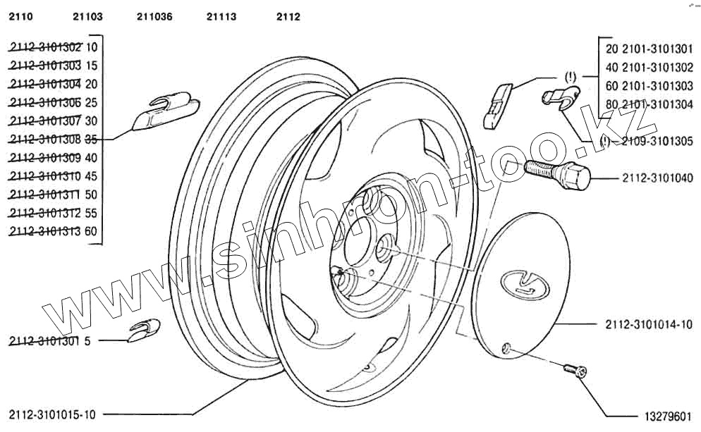 Каталог запасных частей к технике: ВАЗ-2110. Колеса