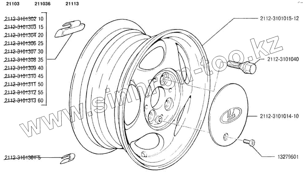 Каталог запасных частей к технике: ВАЗ-2110. Колеса