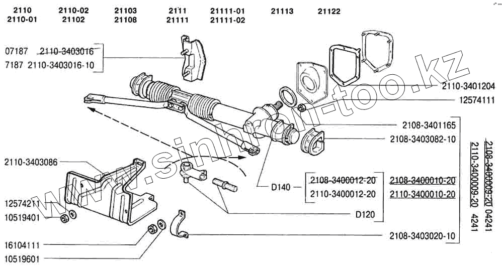 Каталог запасных частей к технике: ВАЗ-2110. Механизм рулевой