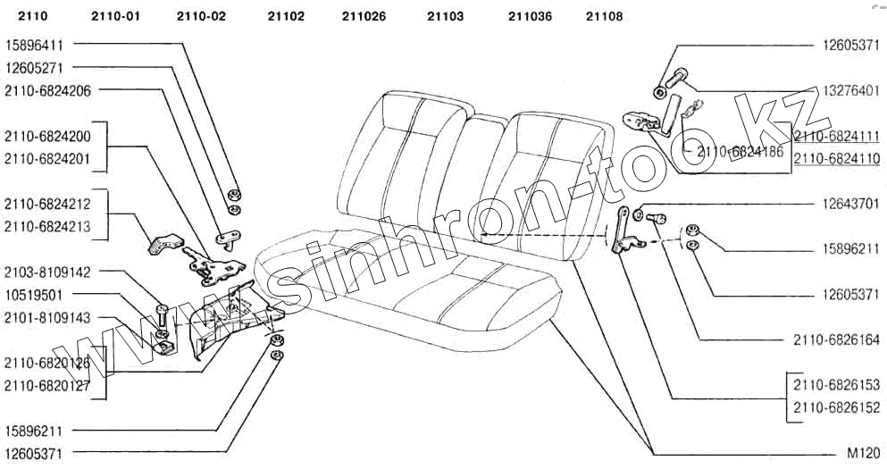 Каталог запасных частей к технике: ВАЗ-2110. Механизм установки заднего сиденья