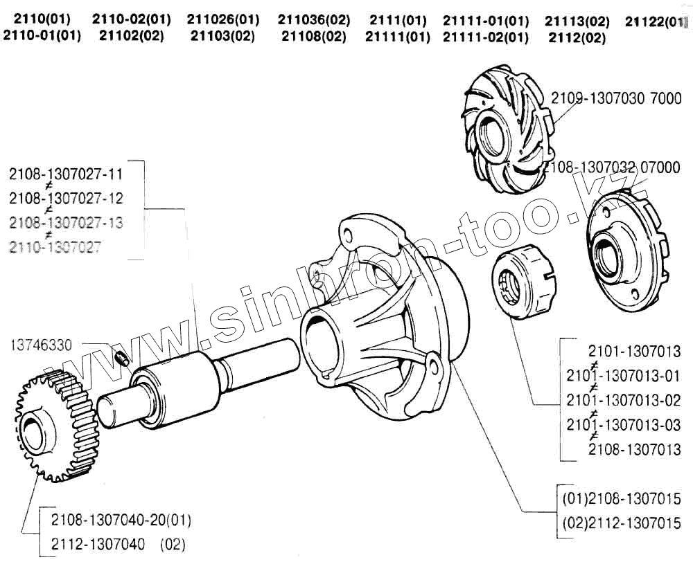 Каталог запасных частей к технике: ВАЗ-2110. Насос водяной
