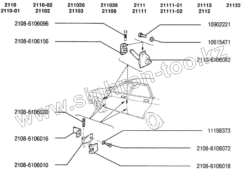 Каталог запасных частей к технике: ВАЗ-2110. Навеска дверей