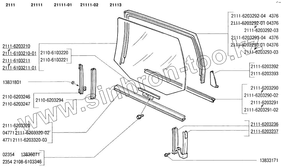 Каталог запасных частей к технике: ВАЗ-2110. Окна задних дверей