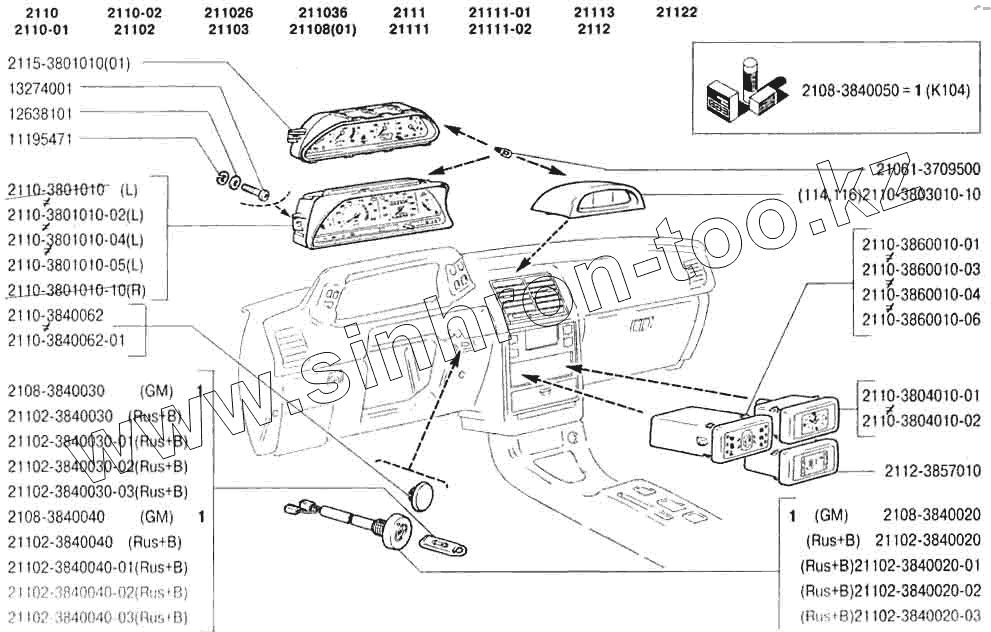 Каталог запасных частей к технике: ВАЗ-2110. Приборы