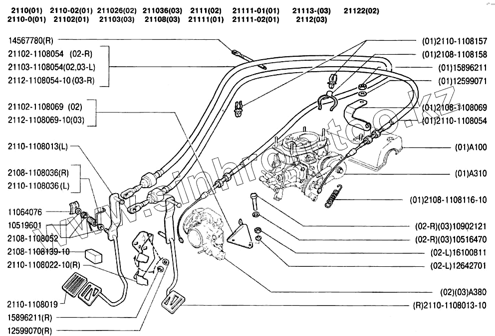 Каталог запасных частей к технике: ВАЗ-2110. Привод акселератора