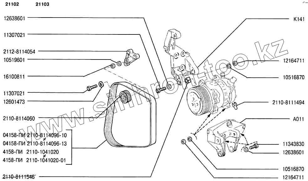 Каталог запасных частей к технике: ВАЗ-2110. Привод компрессора (14)