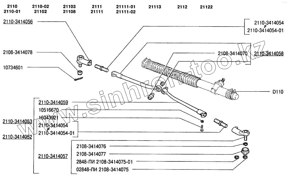 Каталог запасных частей к технике: ВАЗ-2110. Привод рулевой