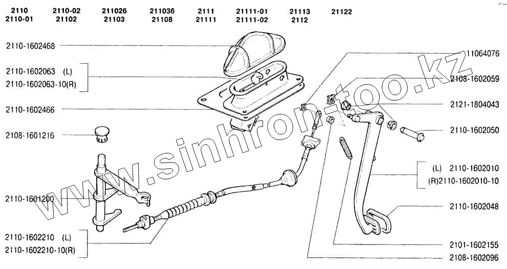 Каталог запасных частей к технике: ВАЗ-2110. Привод сцепления