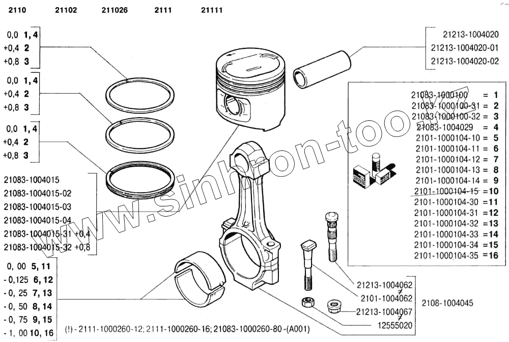 Каталог запасных частей к технике: ВАЗ-2110. Шатуны и поршни