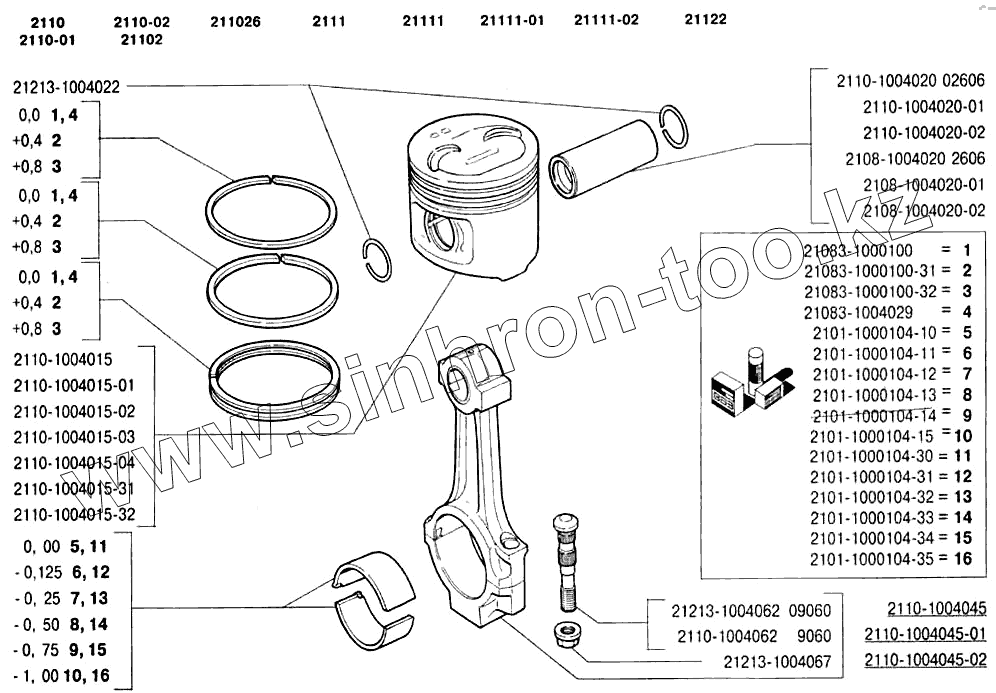 Каталог запасных частей к технике: ВАЗ-2110. Шатуны и поршни