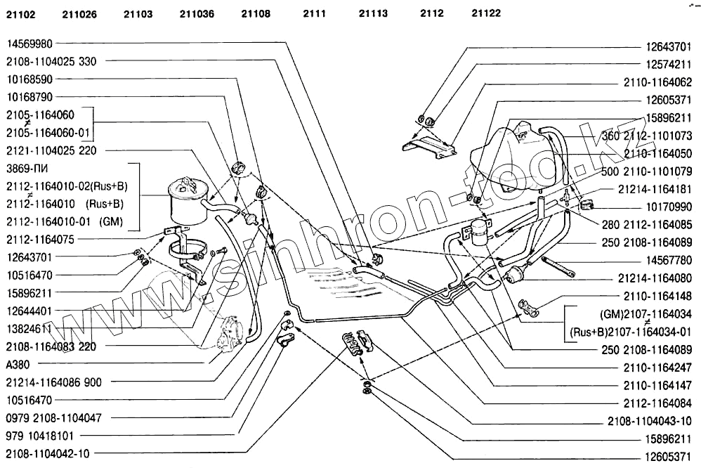 Каталог запасных частей к технике: ВАЗ-2110. Система улавливания паров бензина