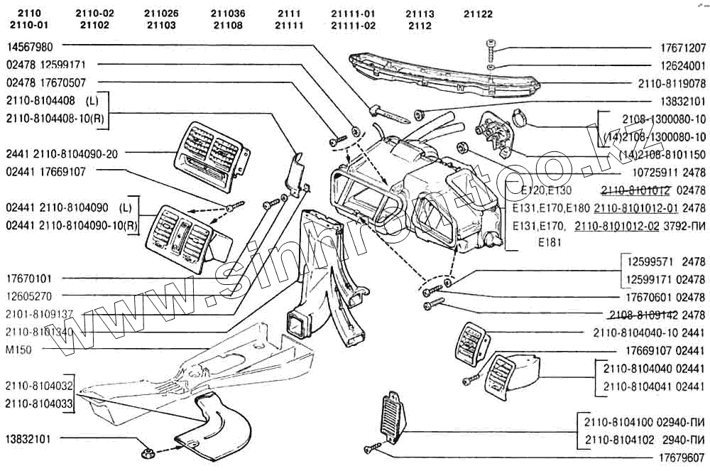 Каталог запасных частей к технике: ВАЗ-2110. Система вентиляции и отопления
