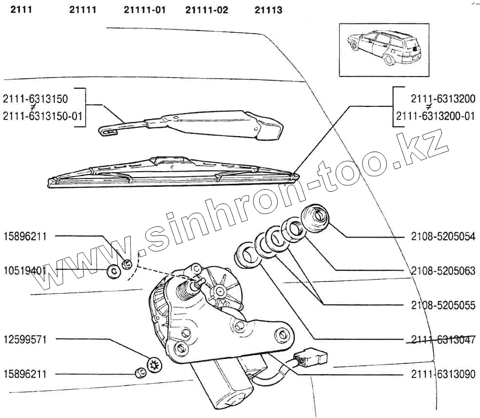 Каталог запасных частей к технике: ВАЗ-2110. Стеклоочиститель задний