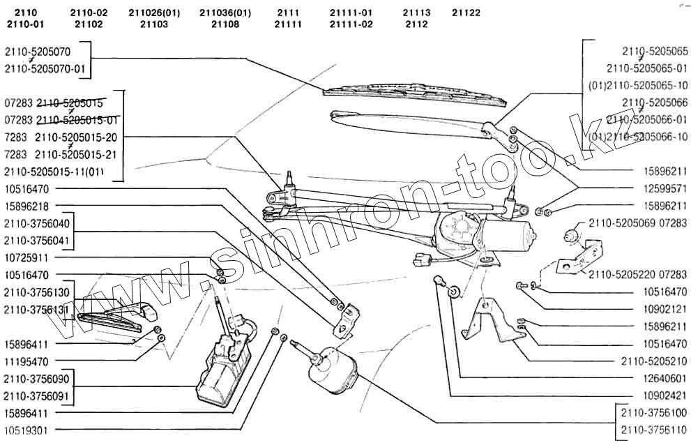 Каталог запасных частей к технике: ВАЗ-2110. Стеклоочистители передние