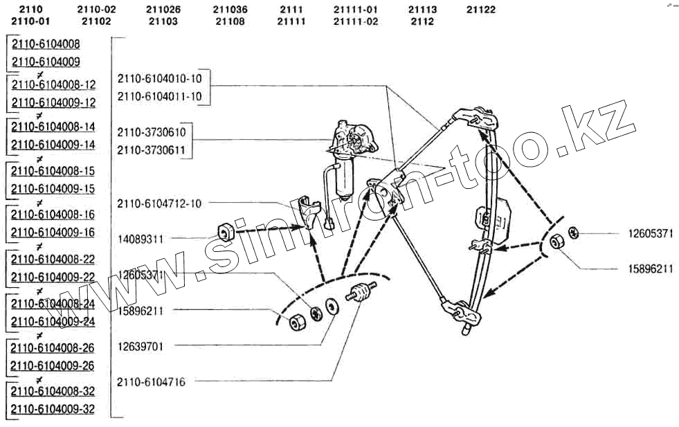 Каталог запасных частей к технике: ВАЗ-2110. Стеклоподъемники передних дверей