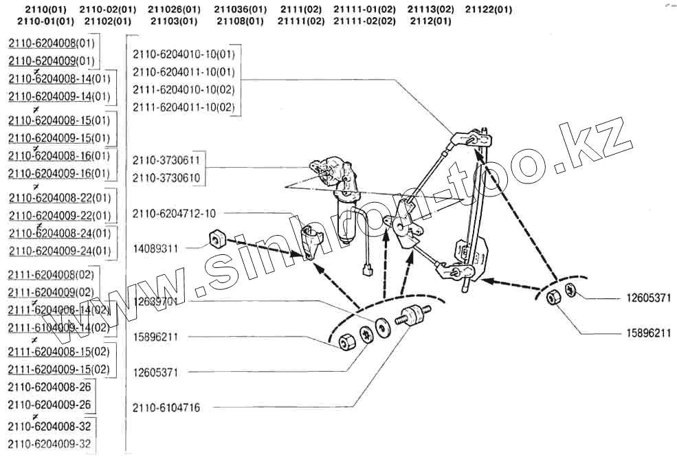 Каталог запасных частей к технике: ВАЗ-2110. Стеклоподъемники задних дверей