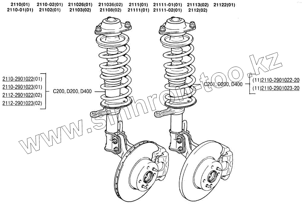 Каталог запасных частей к технике: ВАЗ-2110. Стойки телескопические в сборе