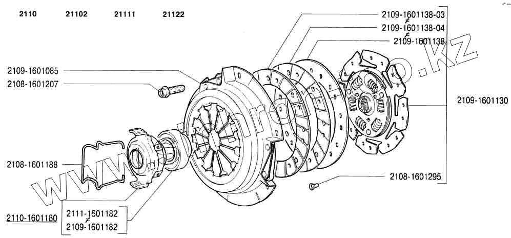 Каталог запасных частей к технике: ВАЗ-2110. Сцепление