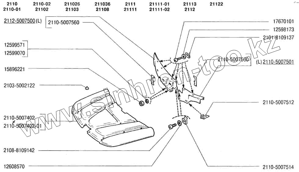 Каталог запасных частей к технике: ВАЗ-2110. Термошумоизоляция моторного отсека