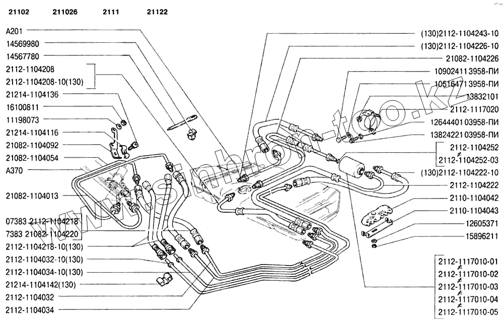 Каталог запасных частей к технике: ВАЗ-2110. Трубопроводы топливные