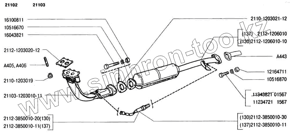 Каталог запасных частей к технике: ВАЗ-2110. Трубы выхлопные (130, 137)