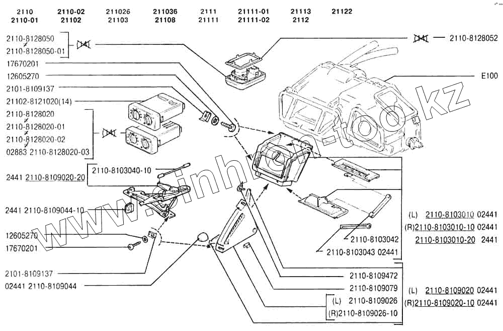 Каталог запасных частей к технике: ВАЗ-2110. Управление вентиляцией и отоплением